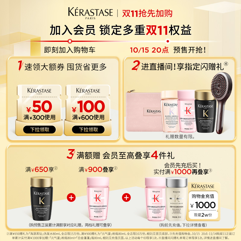 赠:黑钻小洗80ml+黑钻发膜75ml 入会加赠:黑钻小洗80ml+柔顺护发梳(入会)+元气姜粉瓶洗发水80ml 会员购正装单笔满800元赠:元气姜粉瓶洗发水80ml+玻尿酸发膜75ml 含姜的头皮防脱精华,打造健康头皮屏障,维稳头皮稳固发根,还能够激活头皮活力,防止毛囊堵塞,脱发头油的兄弟姐妹闭眼冲!!