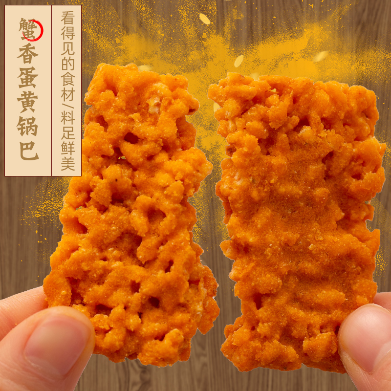 您的位置: 网红蟹黄锅巴蟹香咸蛋黄糯米整箱散装小包装休闲�辣味香辣下午茶