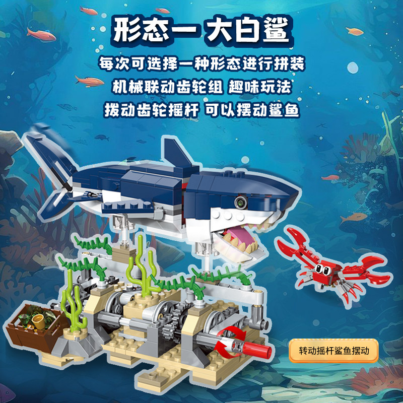 您的位置: 迪库积木拼插积木深海生物鲨鱼多变积木模型儿童益智积木玩具礼物