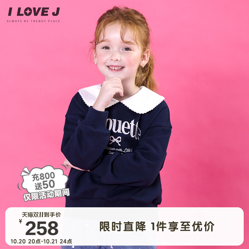 淘宝天猫ILOVEJ童装2024冬季新款女童蕾丝娃娃领字母卫衣百搭上衣/JWWTO47优惠券折扣价格–彩云间