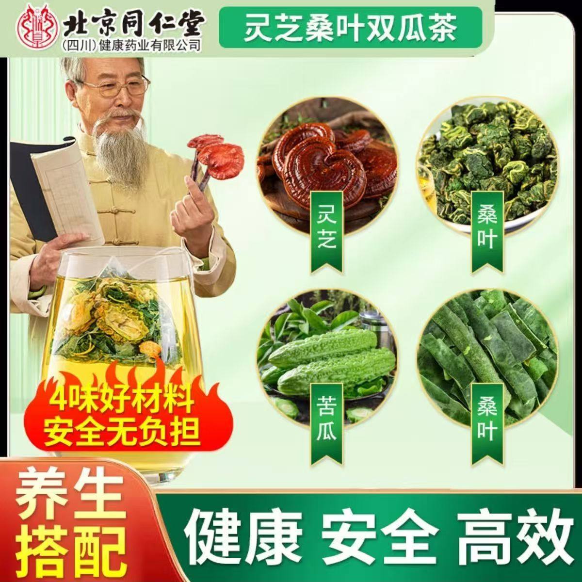 桑叶苦瓜冬瓜降血糖的茶正品灵芝桑叶双瓜茶辅助降三高茶血压血糖血脂可搭苦荞三高食品普洱荷叶减肥瘦肚子大肚腩减小腹去湿气排毒