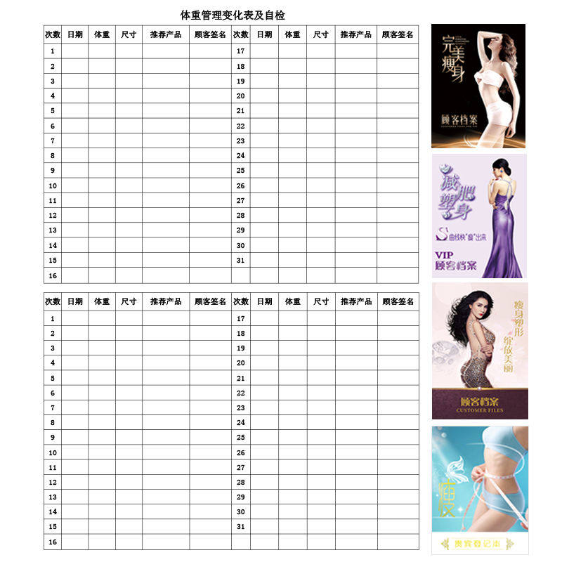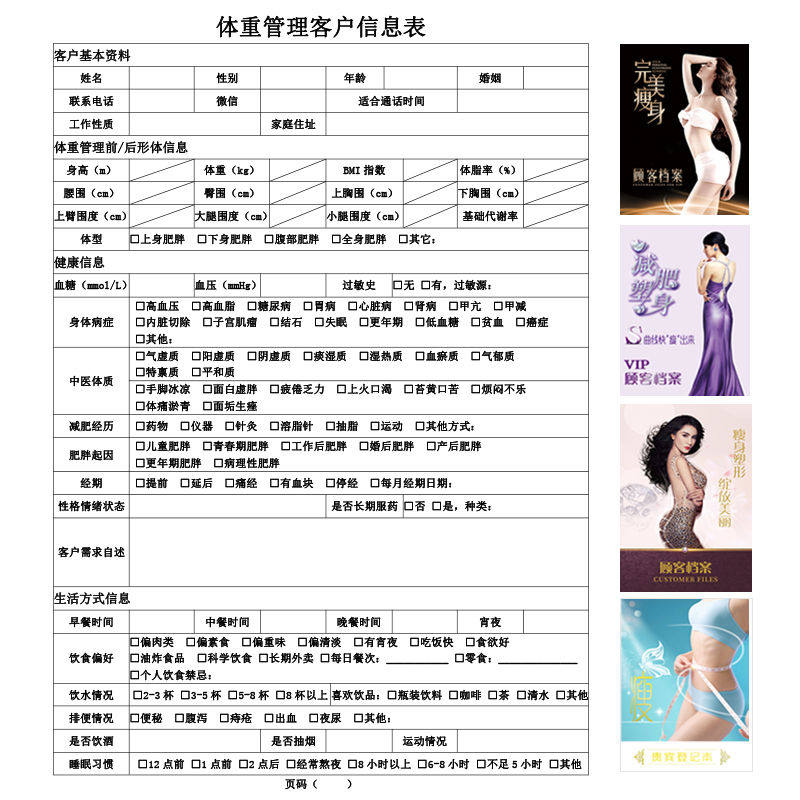 您的位置: 顾客减肥登记本档案本记录美容院表格店体重管理客户瘦身信息专业