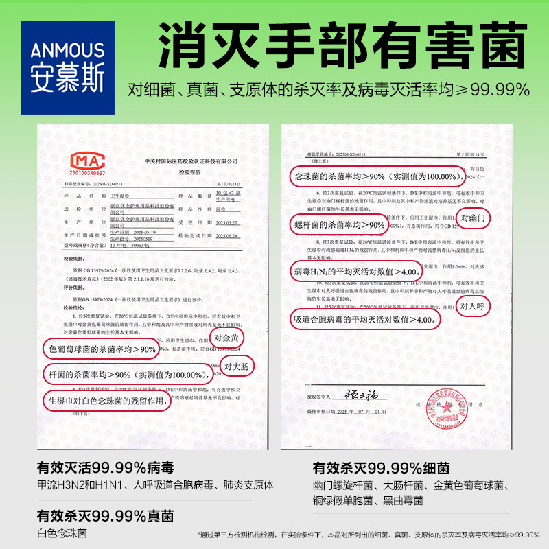 安慕斯婴幼儿童消毒手口湿巾迷你便携0酒精甲流病菌消毒杀菌湿巾