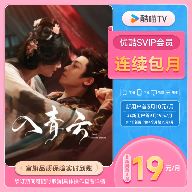 淘宝天猫【优酷SVIP连包月卡】电视会员酷喵支持TV端官方直充优惠券折扣价格–彩云间