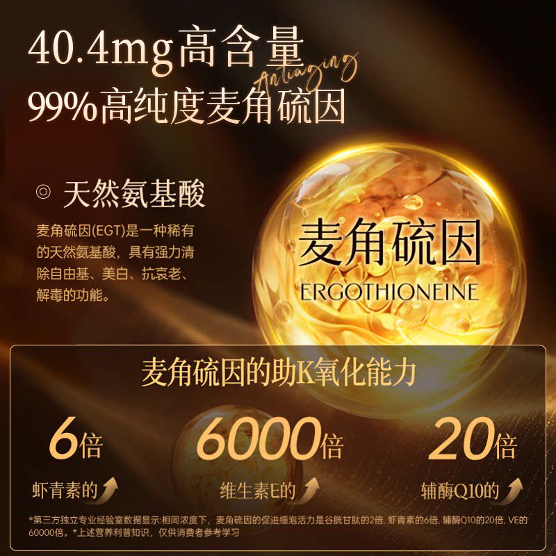 麦角硫因高含量内服胶囊pqq抗时光亚精胺胶原蛋白官方原装进口