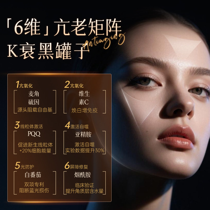 这款产品含有高浓度的麦角硫因与PQQ成分,它不仅是肌肤的守护者,更是内在青春活力的源泉。每一粒胶囊都蕴藏了自然与科技的结合,专为追求青春美丽、抗衰老的你而设计。