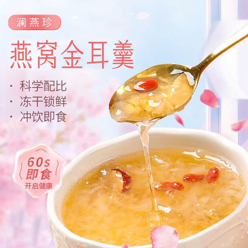 您的位置: 燕窝金耳羹银耳金耳冰糖红枣枸杞冻干燕窝银耳羹冲泡即食炖品礼盒