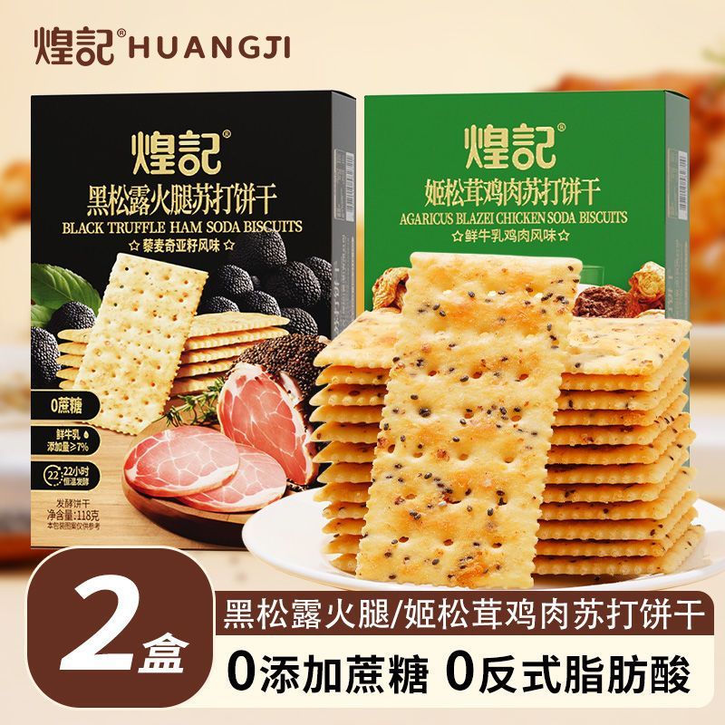 香港煌记黑松露火腿苏打饼干姬松茸鸡肉0添加蔗糖办公室休闲零食