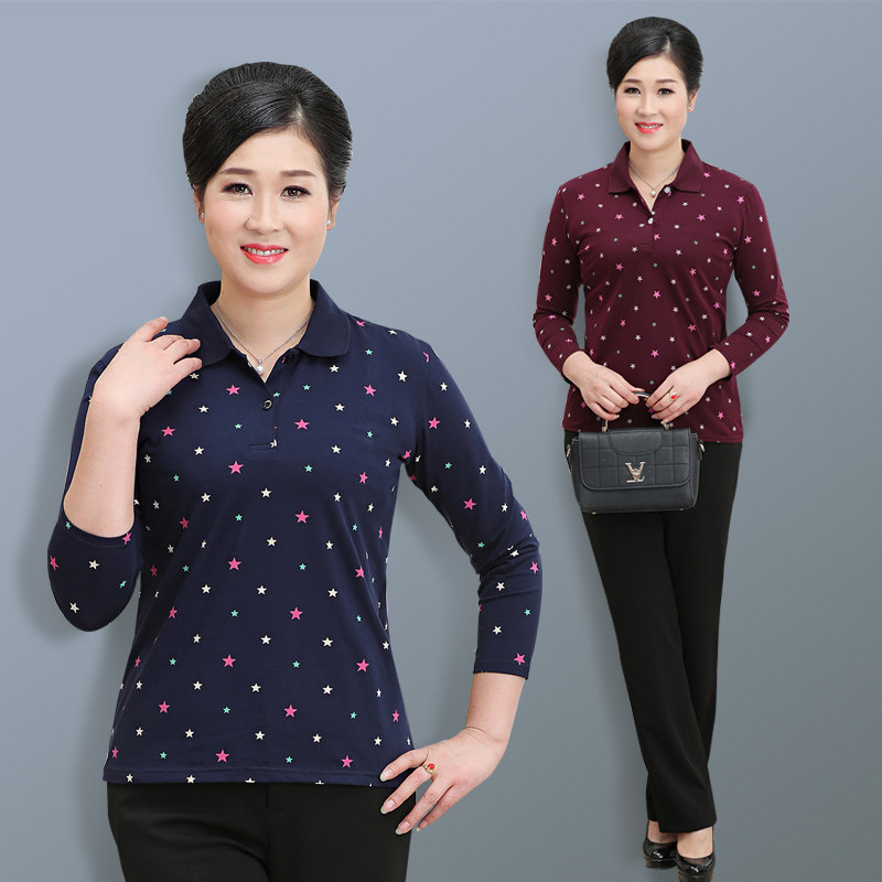 您的位置: 昊群纯棉妈妈装秋款中老年女装t恤大码宽松polo衫弹力九分袖