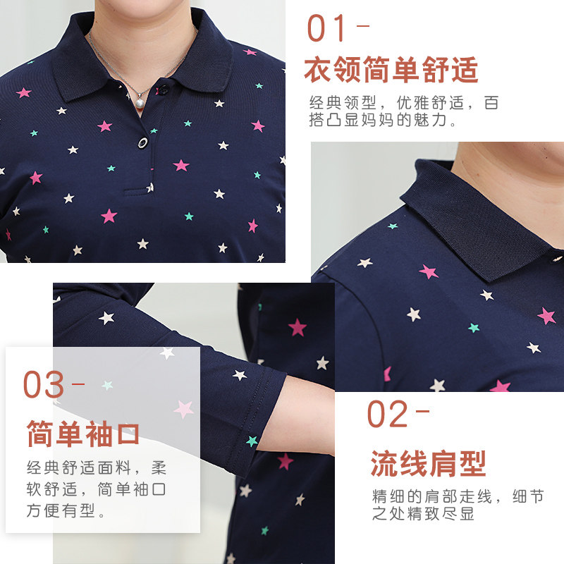 昊群纯棉妈妈装秋款中老年女装t恤大码宽松polo衫弹力九分袖
