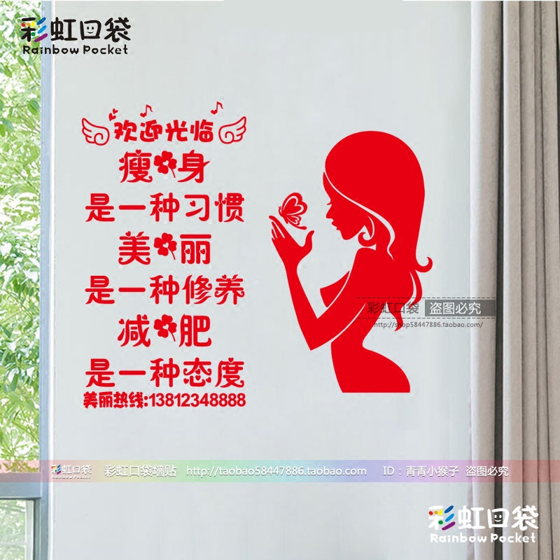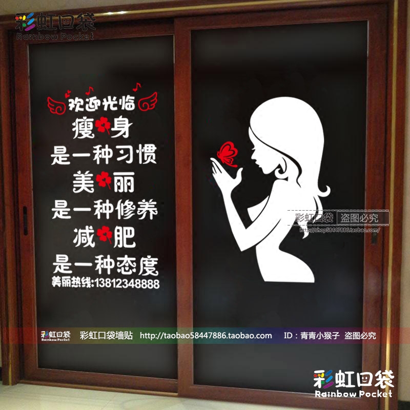 您的位置: 美容院创意装饰玻璃门贴纸瘦身美丽减肥健身中心励志文字装饰墙贴