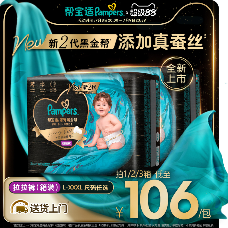 > 【夏天透气顶配】帮宝适黑金帮拉拉裤添加真蚕丝L-3XL尿不湿箱装