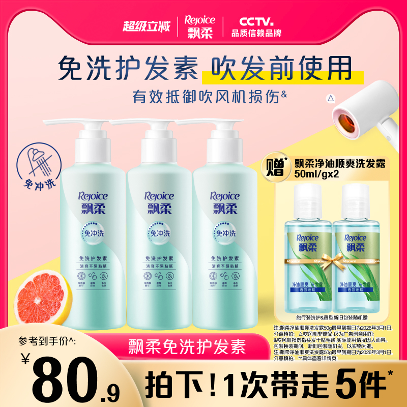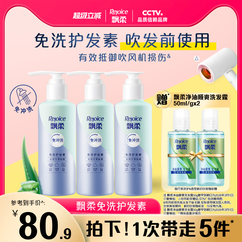 淘宝天猫飘柔免洗护发素非发膜染烫改善毛躁柔顺修护180g*3优惠券折扣价格–彩云间