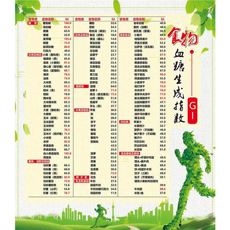 常见食物血糖全套指数表升减肥食物热量表医院挂图墙贴画海报自粘