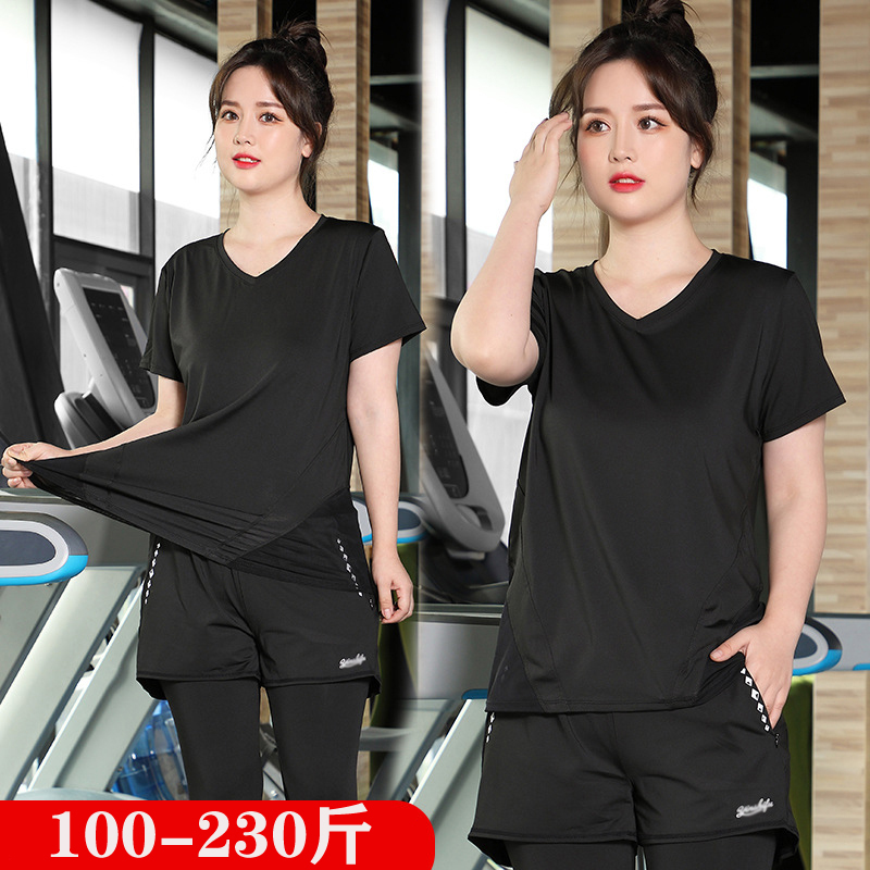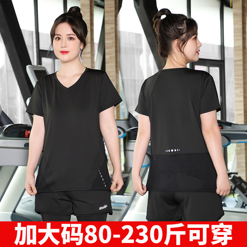 您的位置: 加大码速干健身衣女短袖减肥训练营跑步训练T加肥加大瑜伽服200斤
