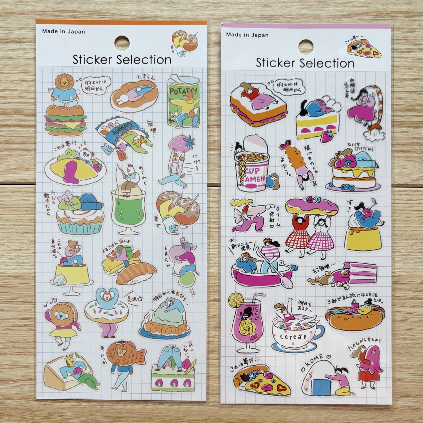 蘑菇屯 日本进口 gaia手绘美食小人贴纸 减肥人物甜点装饰贴画