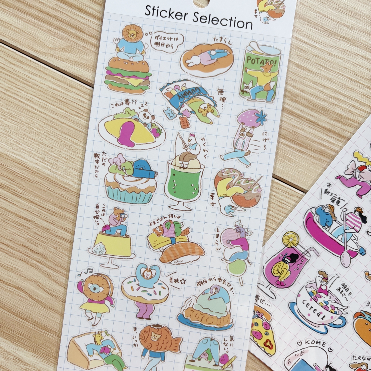 您的位置: 蘑菇屯 日本进口 gaia手绘美食小人贴纸 减肥人物甜点装饰贴画