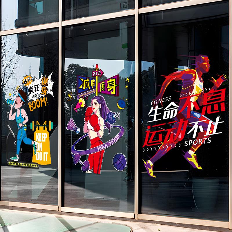 您的位置: 健身房玻璃门贴纸高级会所俱乐部减肥拳击馆橱窗装饰海报布置贴画