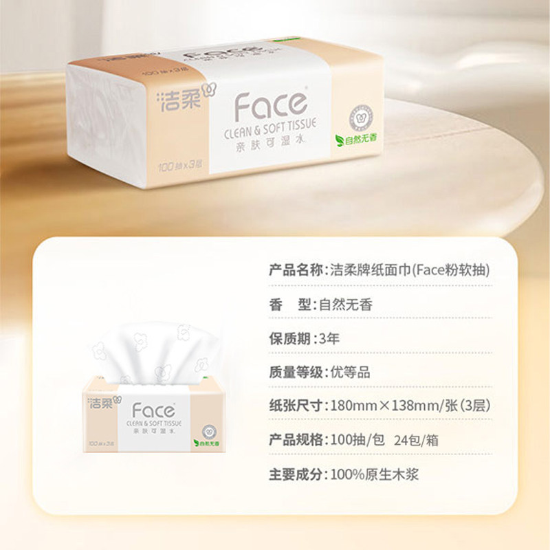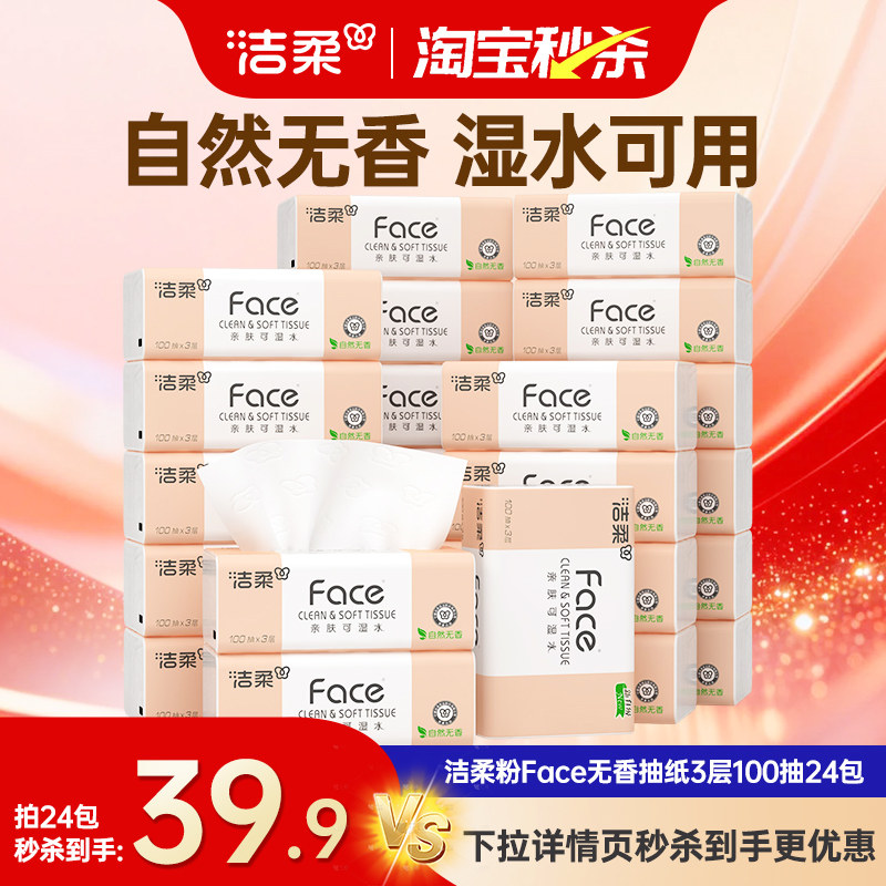 洁柔抽纸face无香纸巾3层24包家用餐巾纸卫生纸面巾纸整箱实惠装