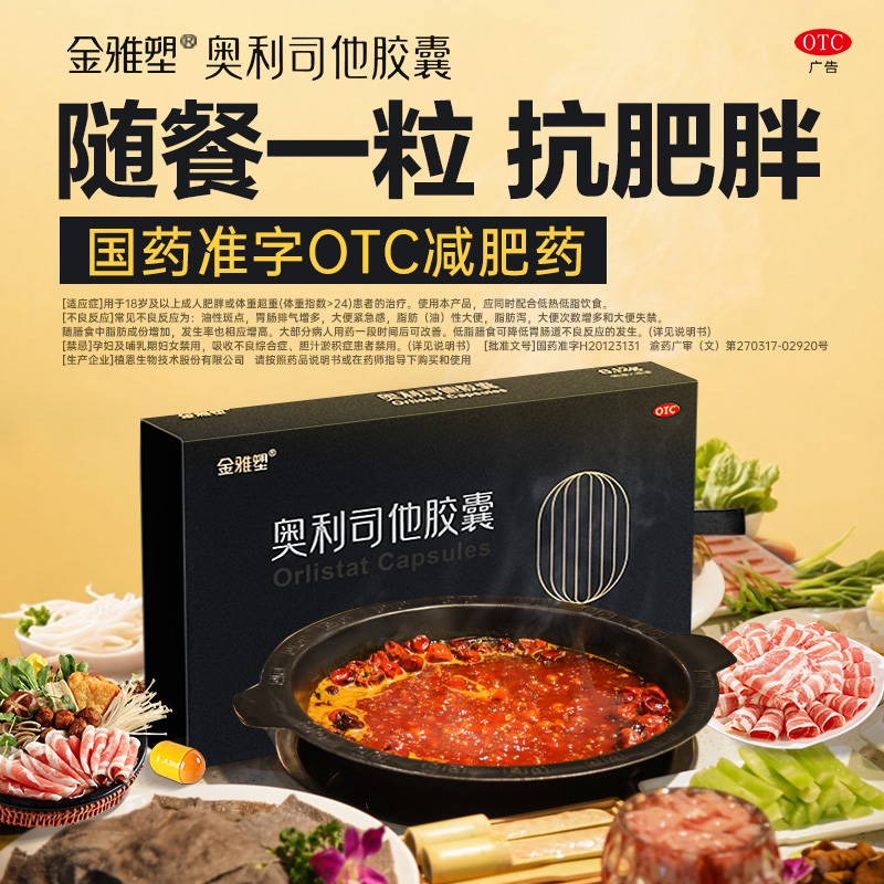 金雅塑奥利司他胶囊otc减肥药减重瘦身排油燃脂官方正品旗舰店