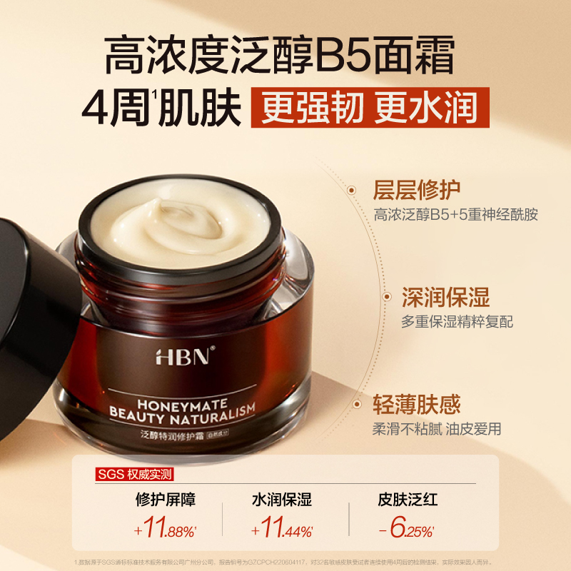 > HBN面霜泛醇B5全能特润霜神经酰胺50g补水保湿滋润修护
