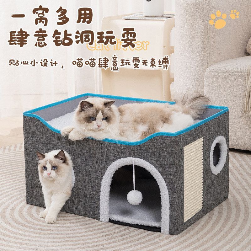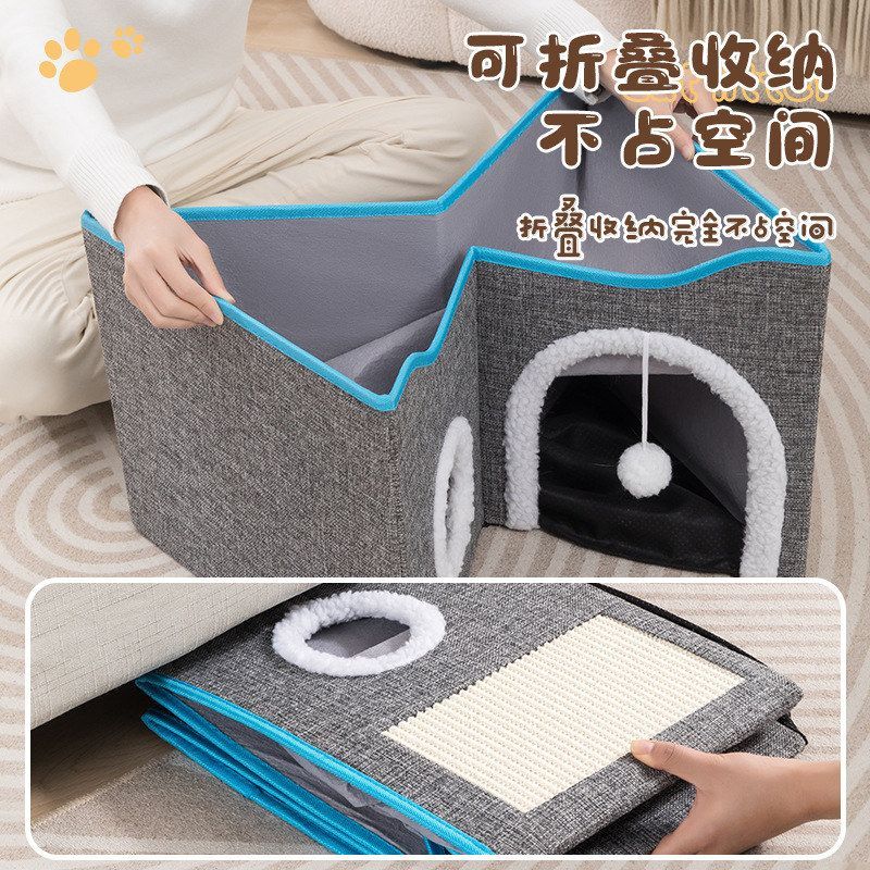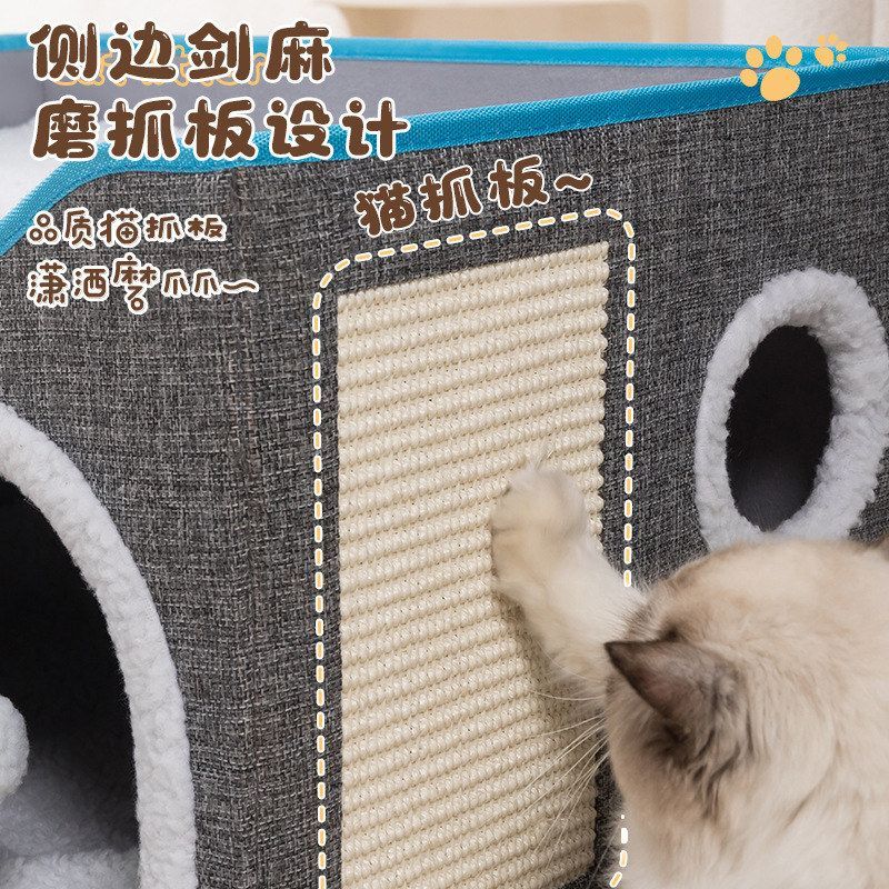 您的位置: 热销款保暖猫屋别墅宠物收纳窝双层猫咪床睡觉封闭式冬季猫房宠物