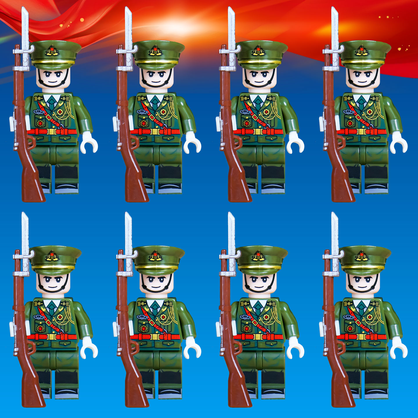 中国积木士兵海军空军陆军国庆阅兵益智拼装积木人仔军事公仔模型