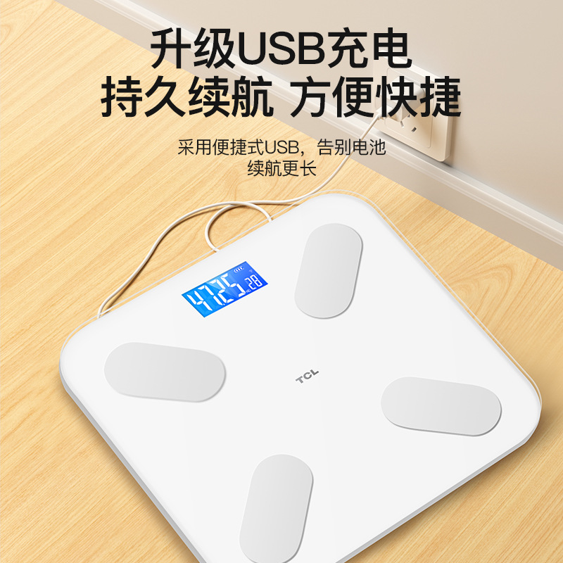 TCL体重秤家用精准减肥专用电子称小型人体秤APP蓝牙智能充电款