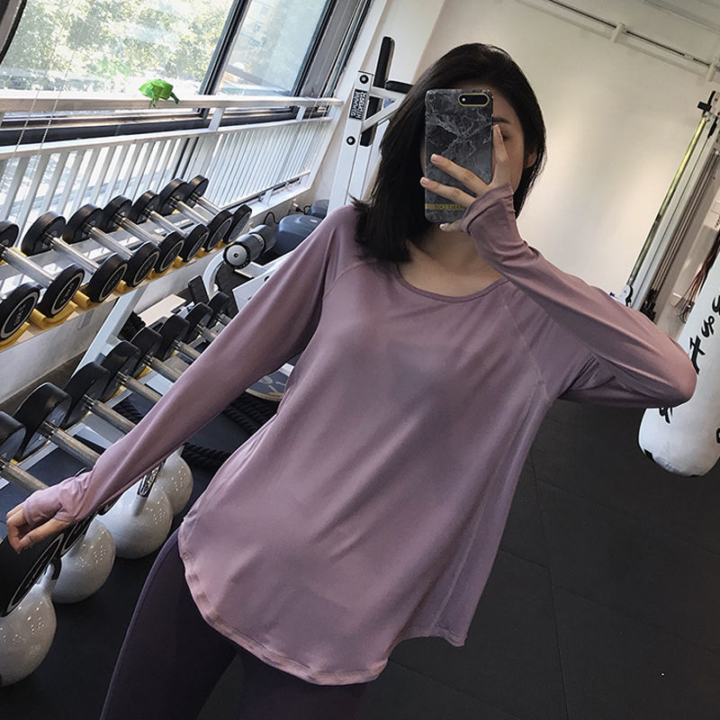 您的位置: 秋冬新款瑜伽服长袖女透气显瘦运动跑步上衣长T宽松健身减肥罩衫