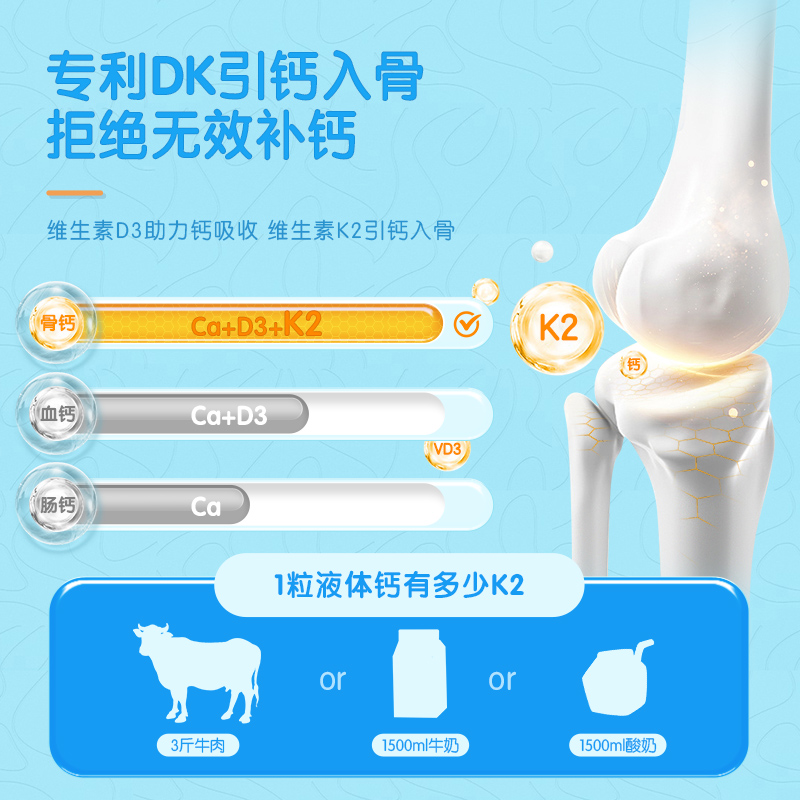 润科宝得聪超吸钙 钙锌维D儿童液体钙柠檬酸钙d3补锌补充剂60袋