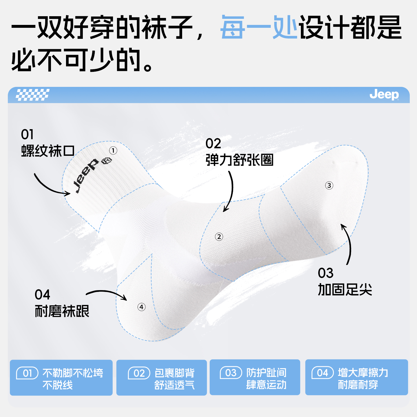 > Jeep袜子男士长筒袜中筒纯棉全棉运动秋冬季户外跑步吸汗防臭抗菌