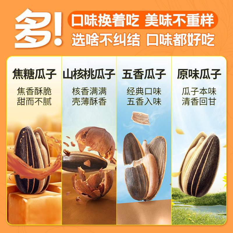 您的位置: 毛嗑瓜子420g*3袋五香焦糖山核桃原香葵瓜子休闲零食炒货