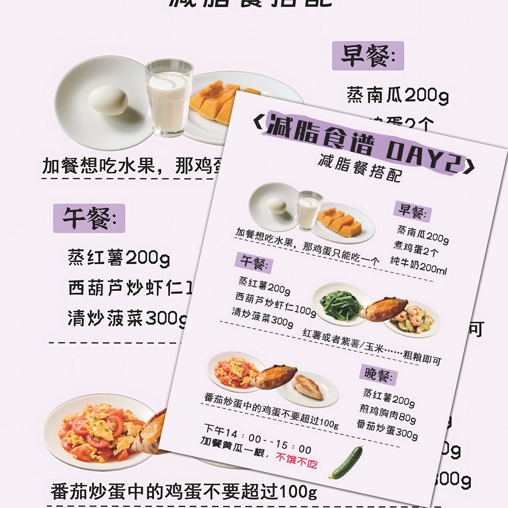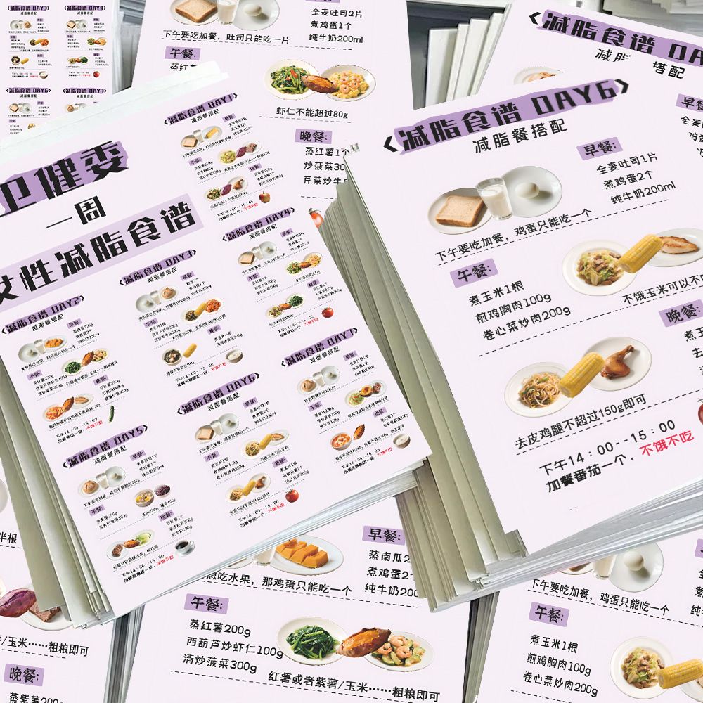 24张卫健委减肥食谱贴纸低碳饮食一周七天不重样减脂计划食谱贴画