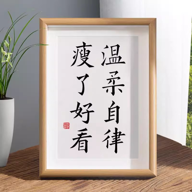 您的位置: 饿了喝水馋了扇嘴自律字画摆件减肥监督桌面装饰书法摆台励志挂画