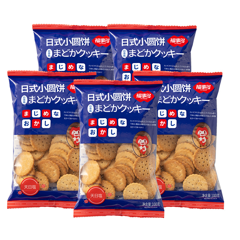 包邮福事多日式小圆饼海盐味100g*5袋网红休闲下午茶零食聚会代餐