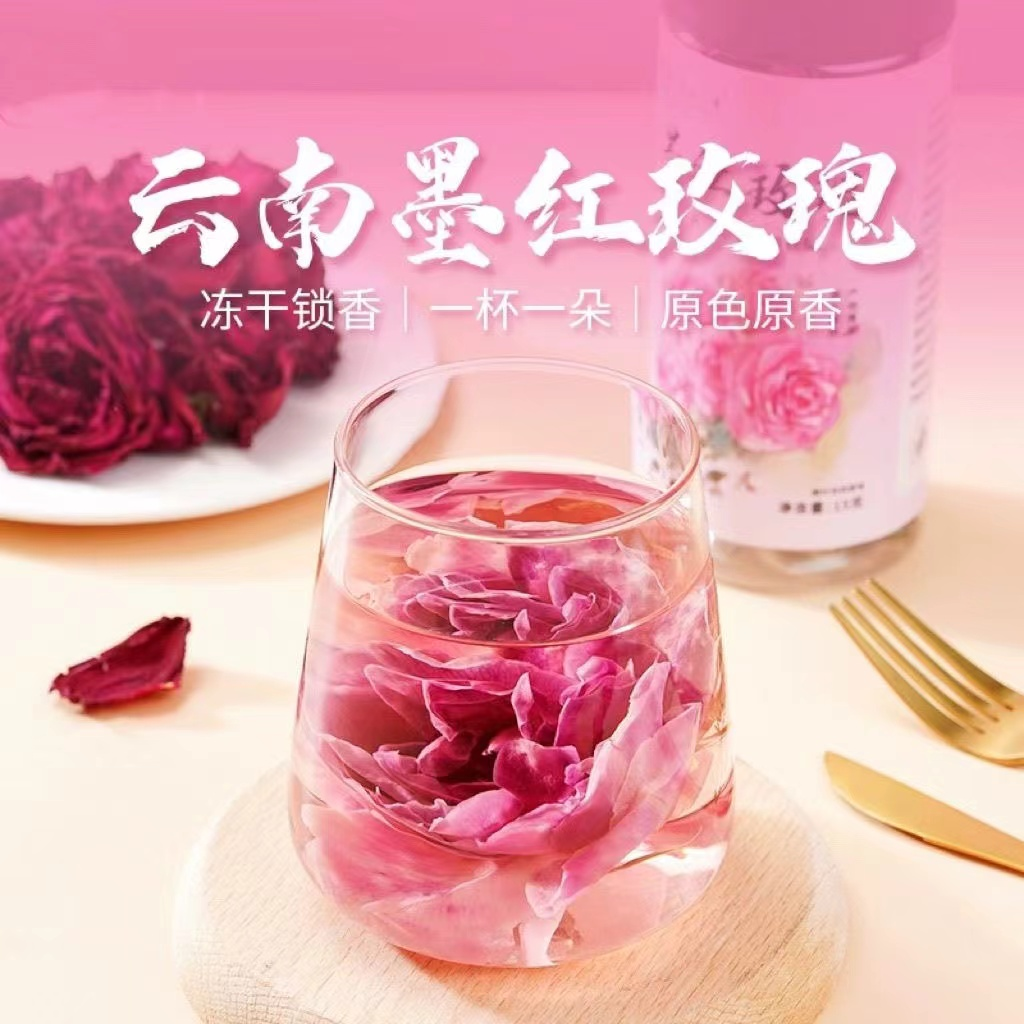 玫瑰花茶墨红玫瑰花冠茶干玫瑰花茶泡水喝的平阴重瓣玫瑰花泡茶喝