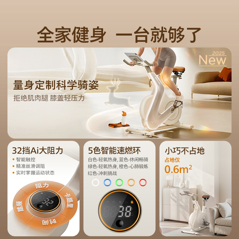 飞利浦小白鹿动感单车家用智能室内减肥自行车健身房专用运动器材