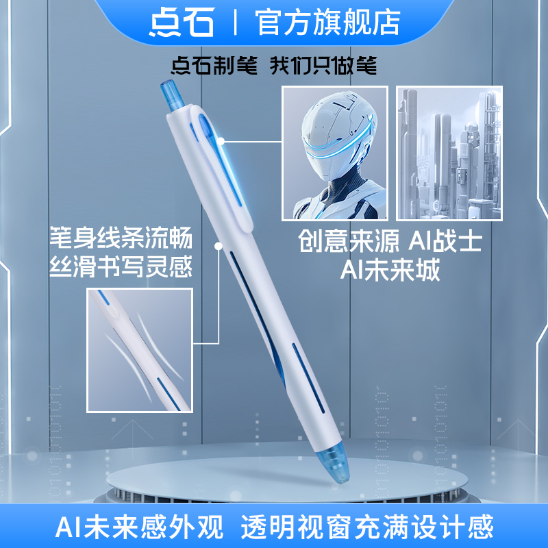 > 【点石制笔】AI未来按动中性笔0.5mm黑红蓝芯双珠顺滑速干学生用刷题笔练字笔高颜值签字笔黑科技笔DS-0192