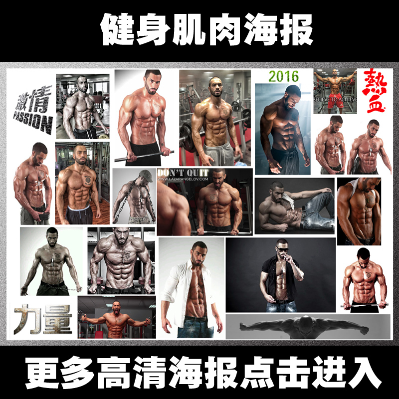 淘宝天猫男女肌肉健身海报 健美健身房运动减肥瘦身马甲线大海报定做制作优惠券折扣价格–彩云间