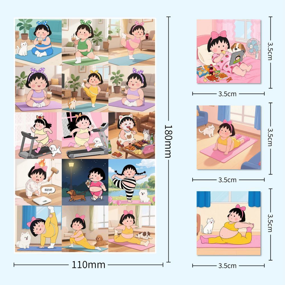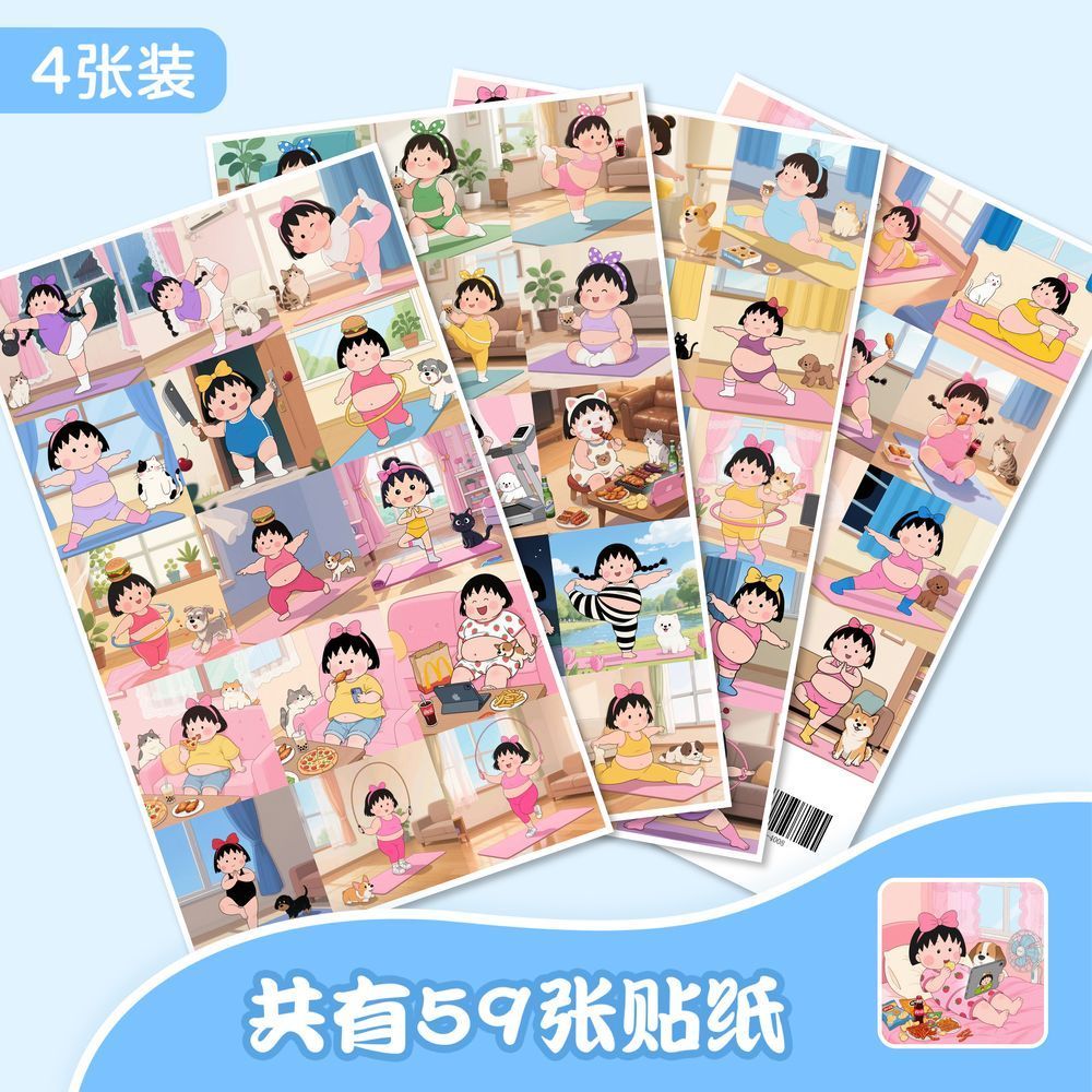 175张樱桃小丸子减肥贴纸卡通二次元笔记本贴画手机手账装饰贴纸