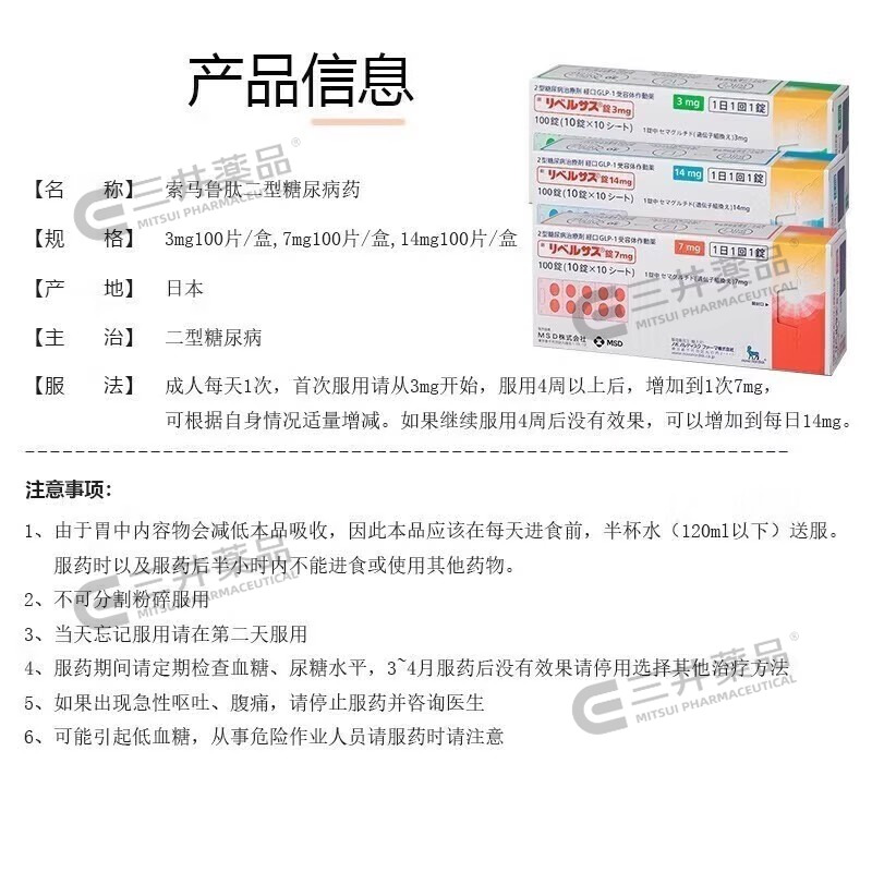 日本降糖药索马鲁肽高血糖司美格鲁肽索玛鲁肽口服2型糖尿病减肥