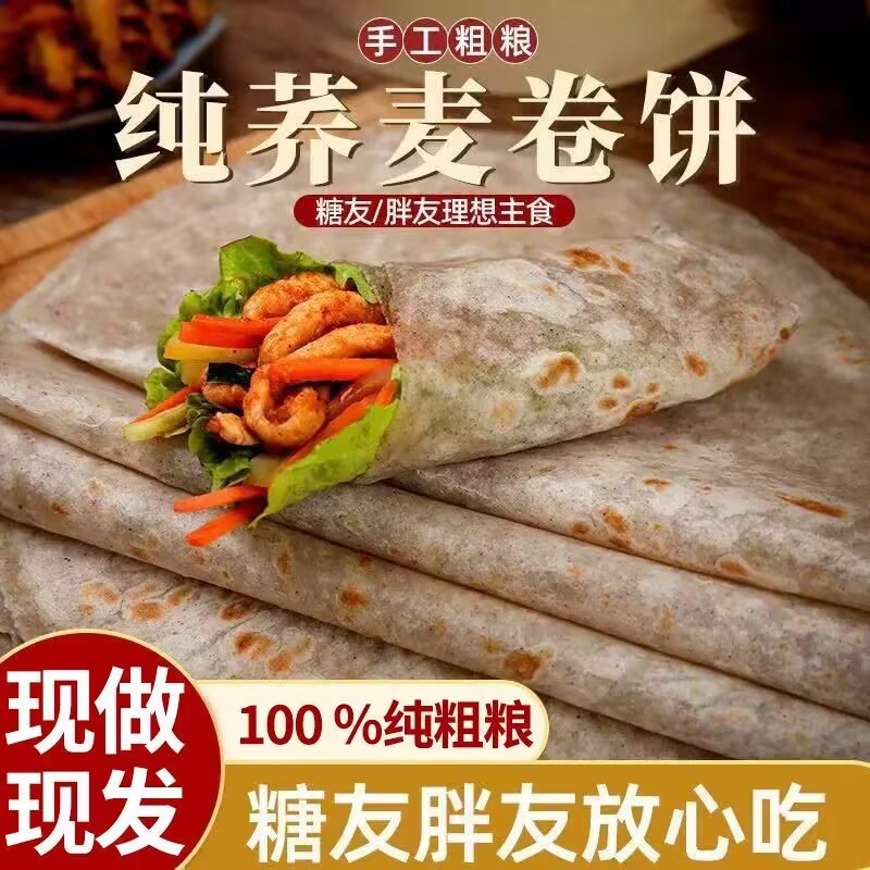 适合减肥期的主食荞麦卷饼烙馍饼皮低脂杂粮煎饼早餐面包低脂无糖减肥粗粮主食品手抓饼乔麦春饼薄饼糖尿病人吃的五谷杂粮减肥瘦身