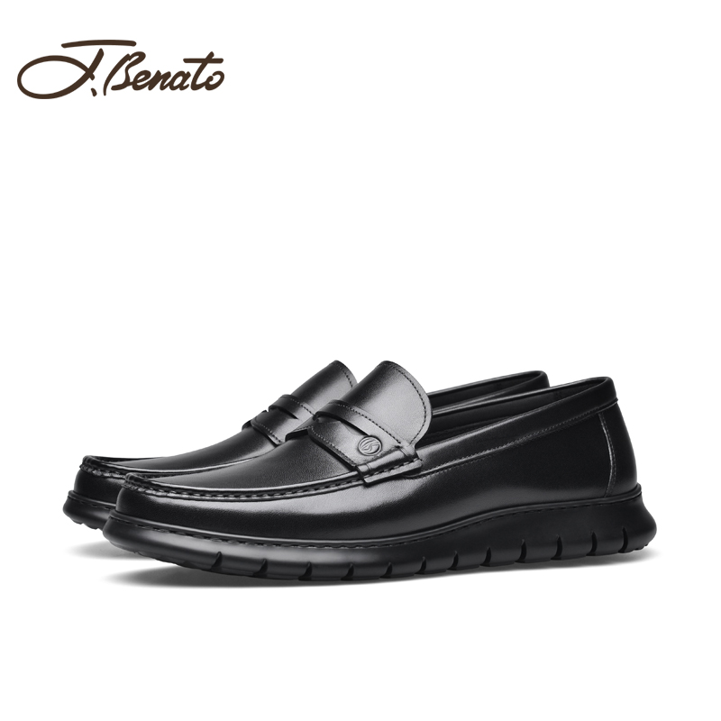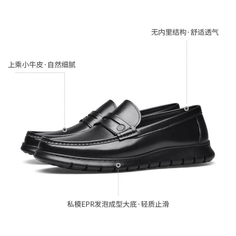 您的位置: 宾度男鞋秋冬季男士商务休闲皮鞋男真皮软底舒适爸爸鞋套脚乐福鞋