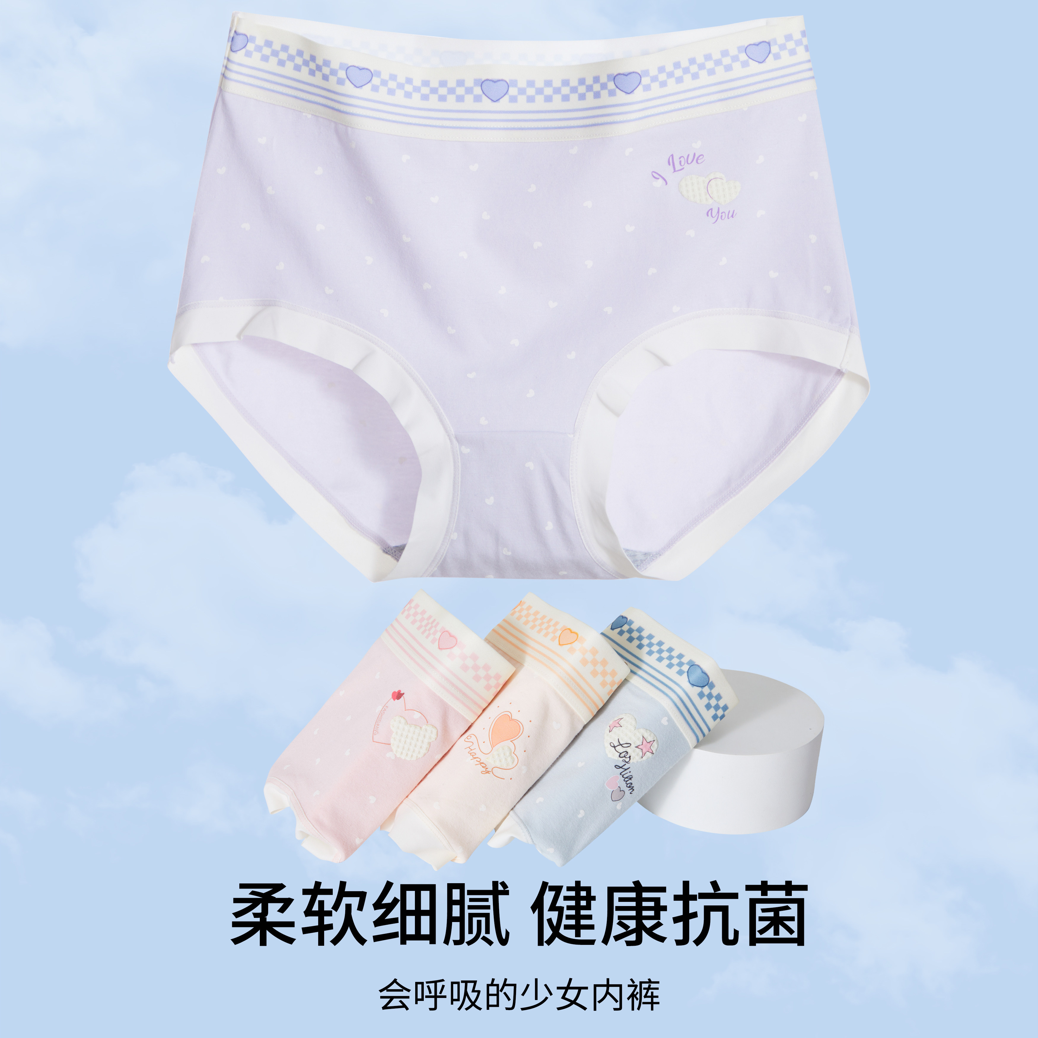 您的位置: 内裤女生纯棉抗菌高初中学生青春发育期少女大码高腰中大童三角裤