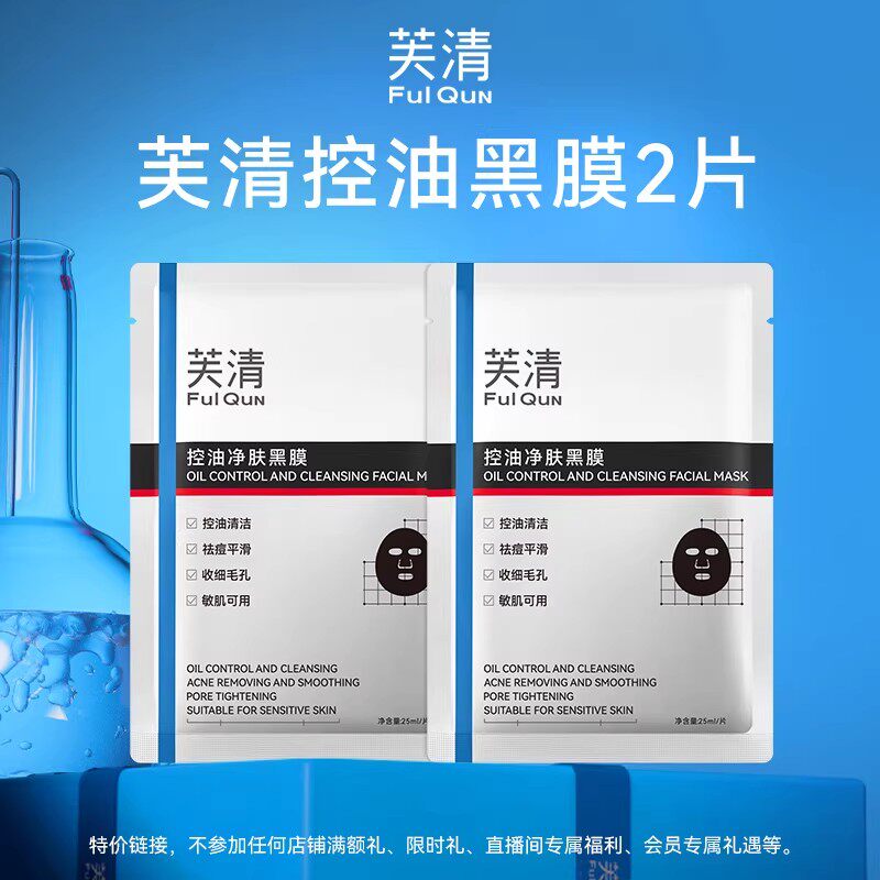 > 芙清控油黑膜改善闭口粉刺清洁祛痘温和保湿面膜敏感肌bytk