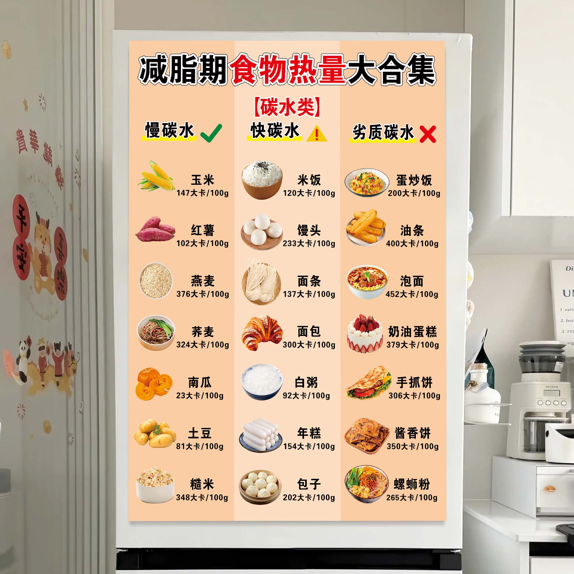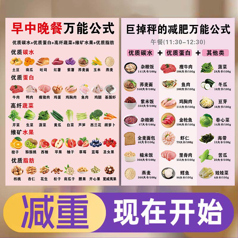减肥食谱墙贴挂图瘦身自我管理计划表一日三餐自律表食物热量表