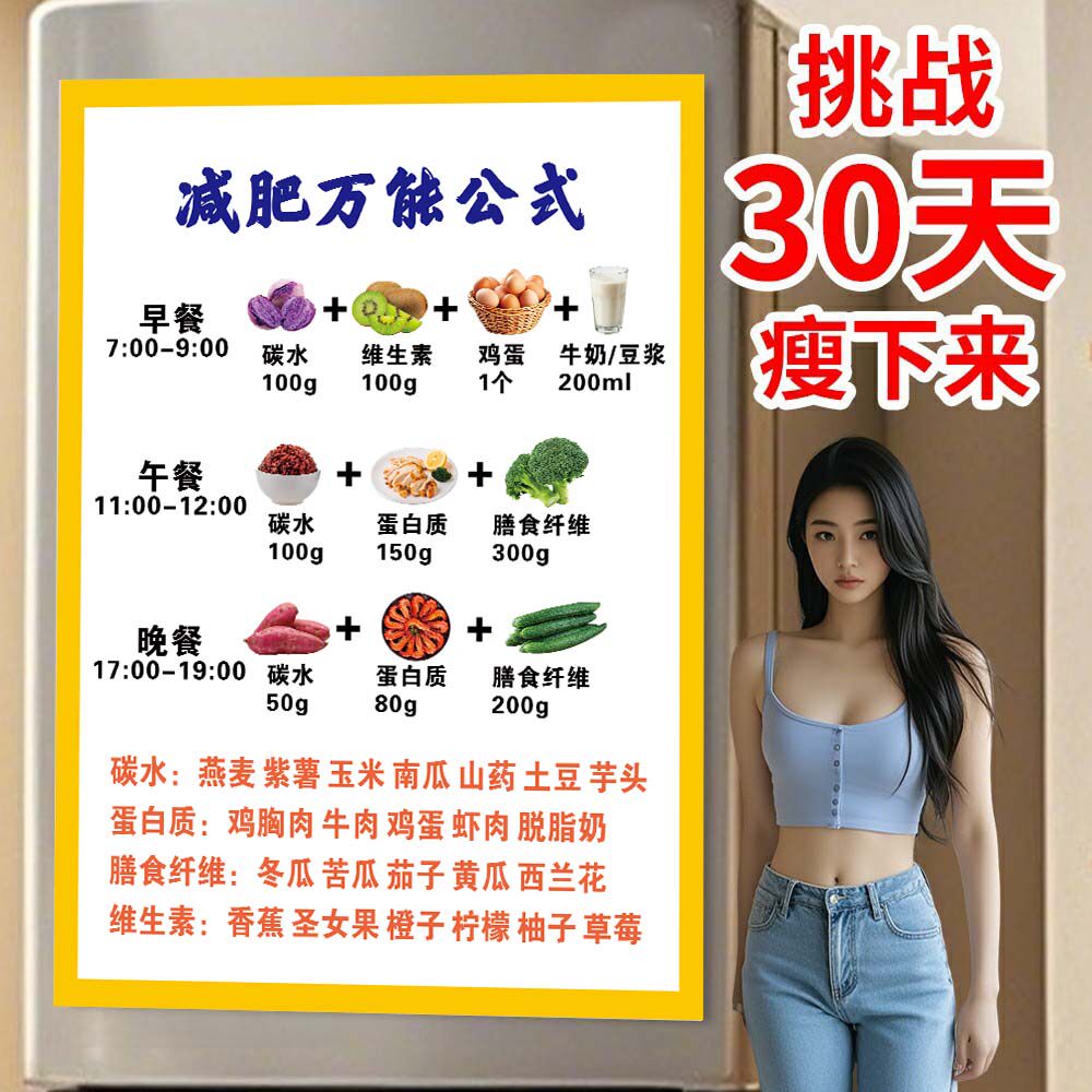 您的位置: 减肥食谱墙贴挂图瘦身自我管理计划表一日三餐自律表食物热量表