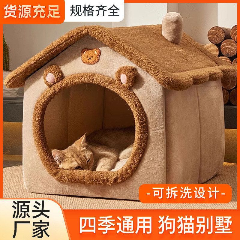 狗窝冬季保暖猫窝半封闭四季通用小型犬专用可拆洗加厚垫子宠物窝