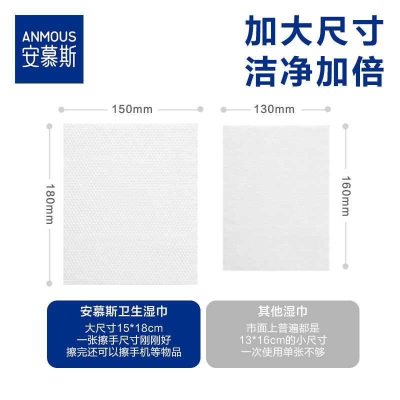 > 下拉详情享优惠丨安慕斯75%酒精湿巾卫生独立便携装外出有效杀菌