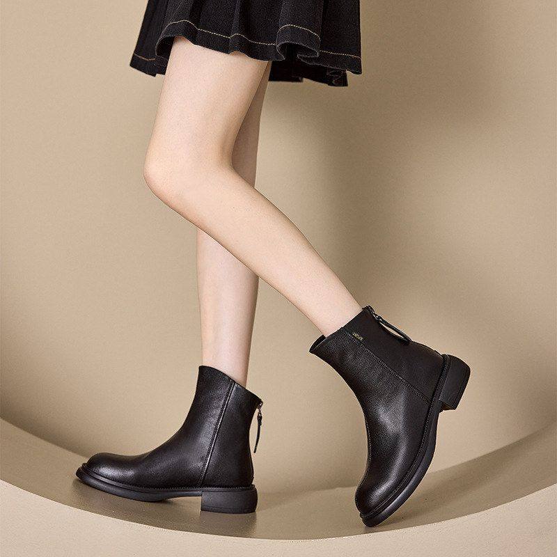 您的位置: 2025秋冬加绒真皮马丁靴女韩版后拉链瘦瘦女靴子复古大码休闲鞋子